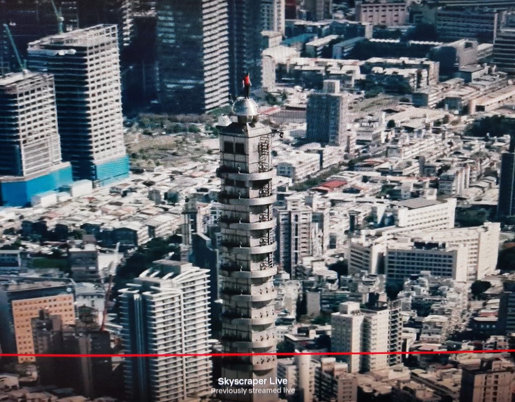 Morgens um kurz nach 9 startete er an der Xinyi Road ganz unten an der Südostecke. Nur gut 90 Minuten stand er sicher oben auf dem ikonischen Wolkenkratzer.
