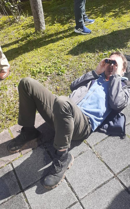Am Samstagmorgen war der Aufstieg bei Nieselregen und trübem Himmel noch abgesagt und verschoben worden. Am Sonntag herrschten perfekte Bedingungen. Ich sah mir den Beginn des Aufstiegs daheim an und fuhr dann zur MRT Xiangshan, um mit eigenen Augen zu sehen, was da passierte. Mein kleines Fernglas habe ich mitgenommen – das erste Mal, dass ich hier in Taiwan wirklich gute Verwendung dafür hatte.